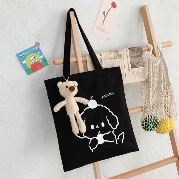 Custom Logo Dog Printed Black Large Cotton Tote With Cute Bear Images |